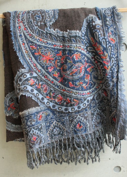 軽いウールガーゼのジプシーストール [刺繍と織りでチクチク描くストールgray3]