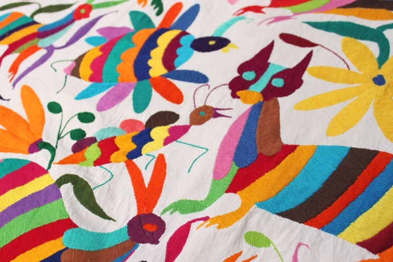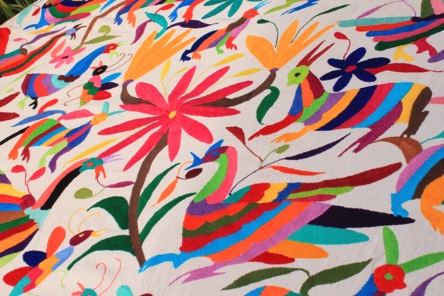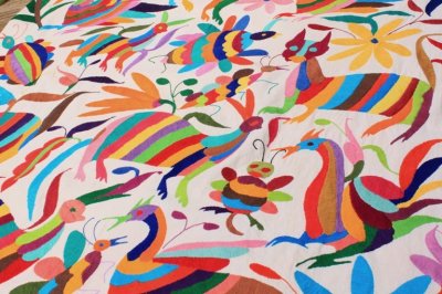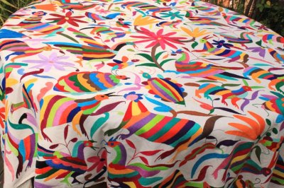 メキシコオトミ族の手刺繍 ベットカバー・テーブルクロス