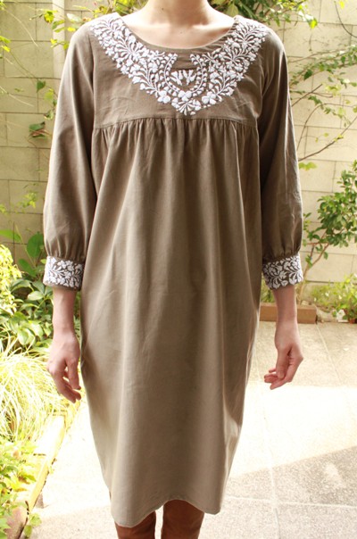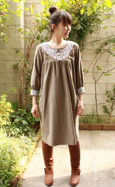 コーヂュロイのメキシコ刺繍ワンピース
