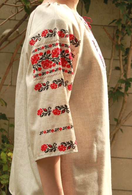 ウクライナ刺繍ソロチカ リネン・薔薇刺繍