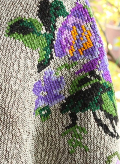 手刺繍を入れて、ポンチョの形に仕上げます。
