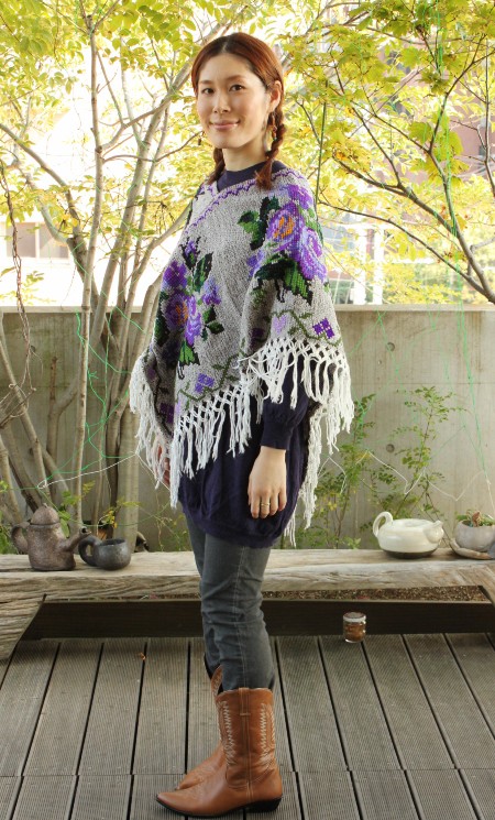 プエブラ州のポンチョ [グレー薔薇刺繍]