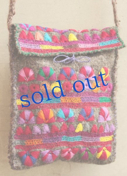 手つむぎ・手織りウールの刺繍ポシェット