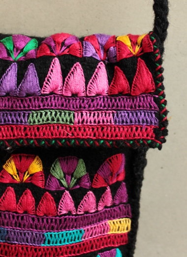 手つむぎ・手織りウールの刺繍ポシェット [チアパス・ブラックM]