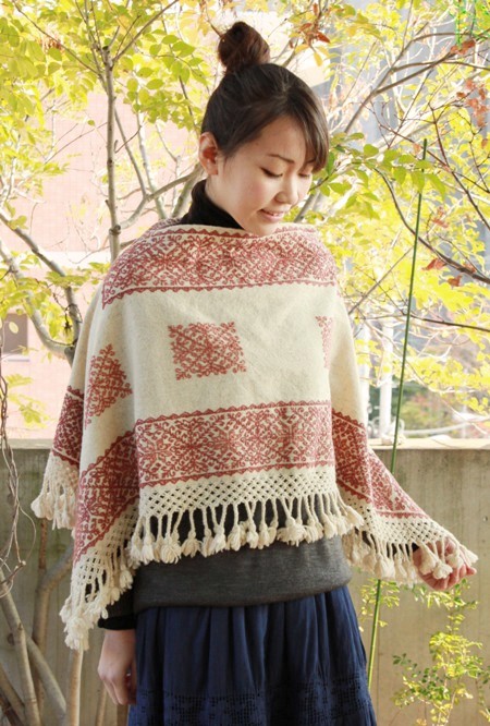 そこに手刺繍を入れて、ポンチョの形に縫製してあります。