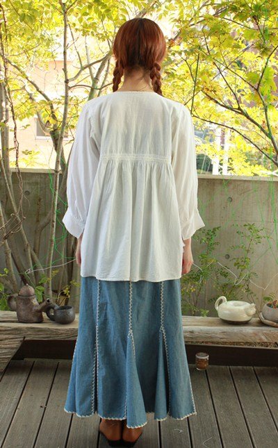 胸元・袖口のギャザーも、刺繍で模様をつけながら、手でていねいに寄せています。