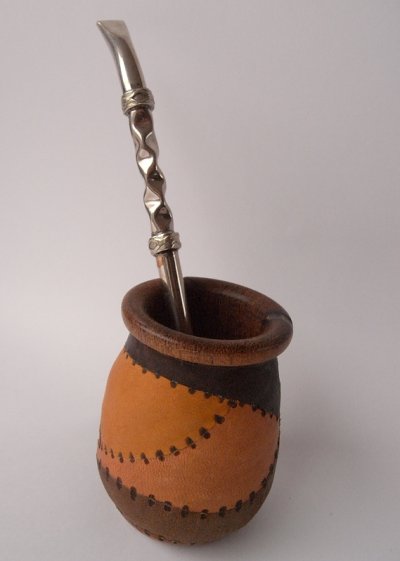 マテ茶セットには、マテ(カップ本革内側は木)ボンビージャ(ストロー)がついています。