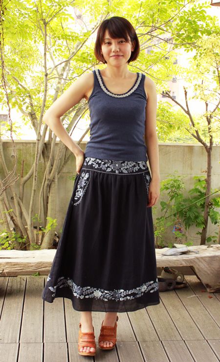 メキシカン刺繍のキャミソールチュニック(スカート) [Tsブラック]