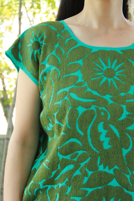 メキシコの洋服には珍しいレーヨン生地を使用しているため、四角い形でありながら、