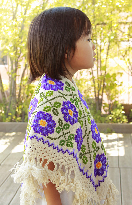 そこに手刺繍を入れて、ポンチョの形に縫製してあります。