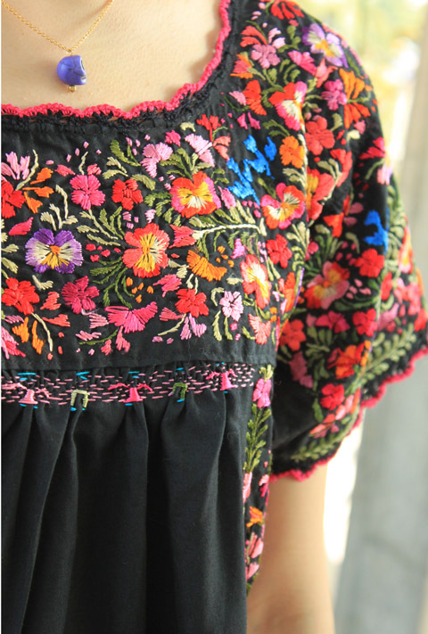 見ていて飽きない細かい刺繍。オアハカに咲く季節の花を思いを込めて刺繍にします。
