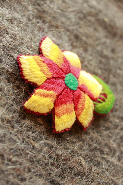 その刺繍を、一つ一つ切り抜いて、llamallamaオリジナルの、コサージュを作りました!