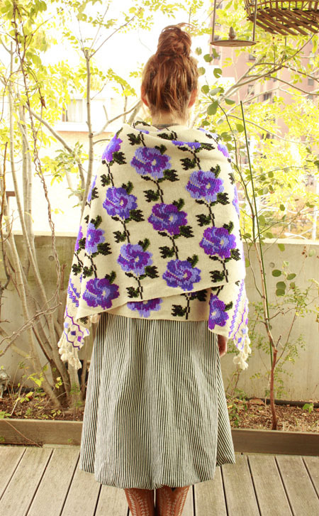 刺繍大判ショール手織り羊毛100% [デラックス総刺繍薔薇紫]