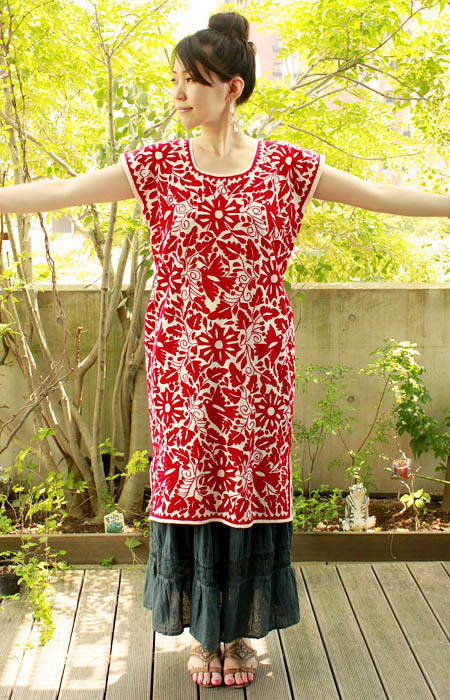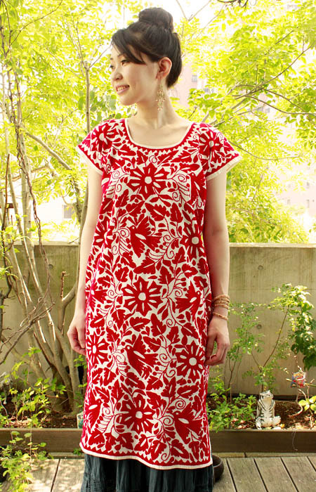 メキシコ刺繍ウイピルドレス「トゥクステペックの刺繍」