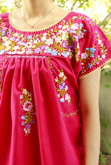 見ていて飽きない細かい刺繍。オアハカに咲く季節の花を思いを込めて刺繍にします。