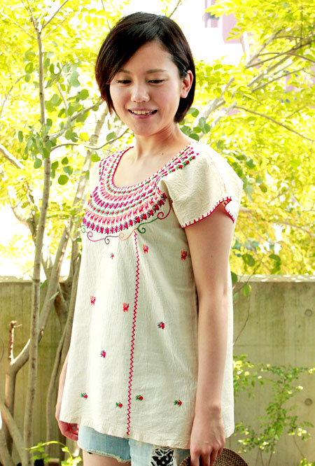 メキシコ刺繍ウイピルチュニック「ミステコ族の刺繍」