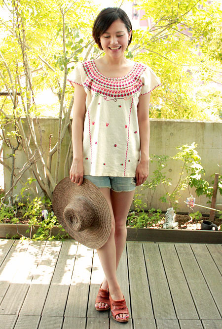 ミステコ族の刺繍ウィピルトップス [マンタ生地costa-animalitos]