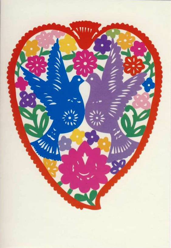 グリーティングカード「メキシコの切り絵(鳥・ハート)」
