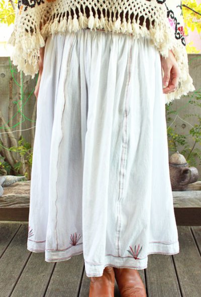 ミヘ族のロングウイピルドレス [メキシコ民族衣装白×グリーン]