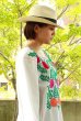 メキシコ製の風合いある厚手の綿生地マンタ生地に刺繍された1着です。