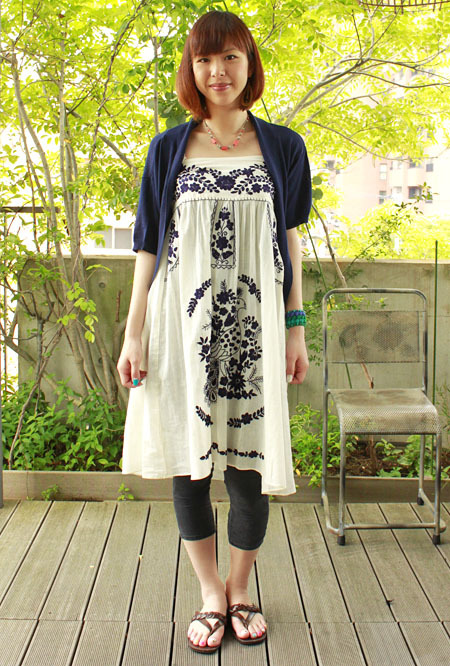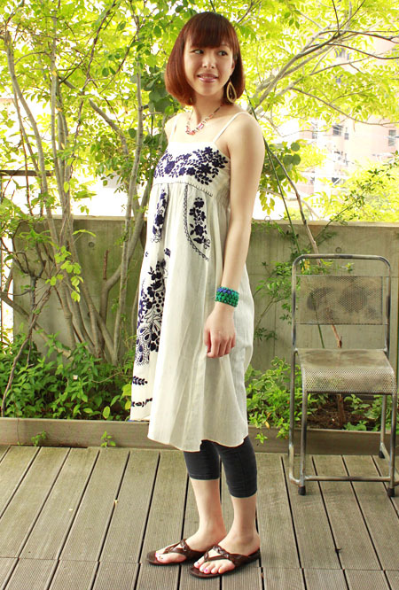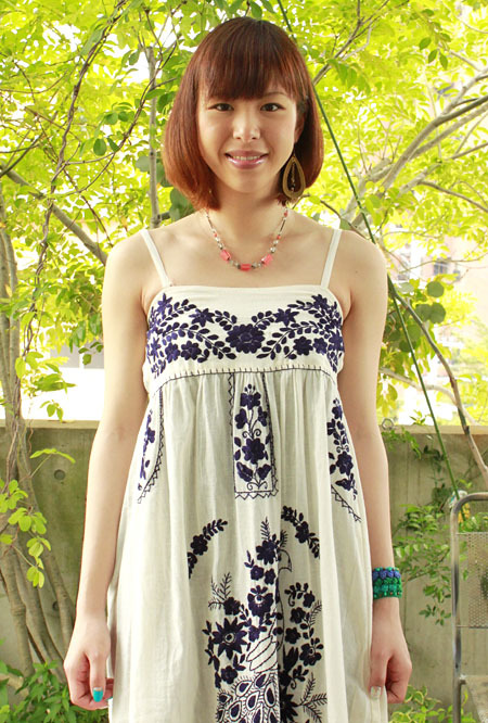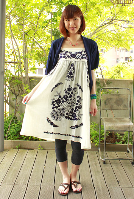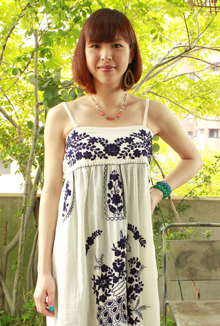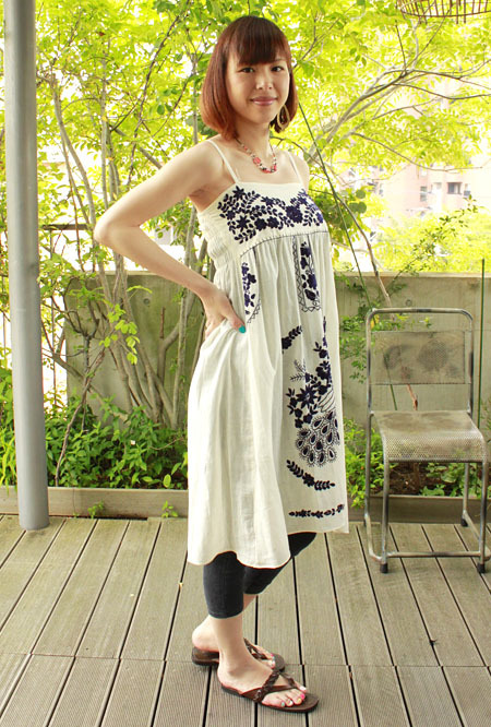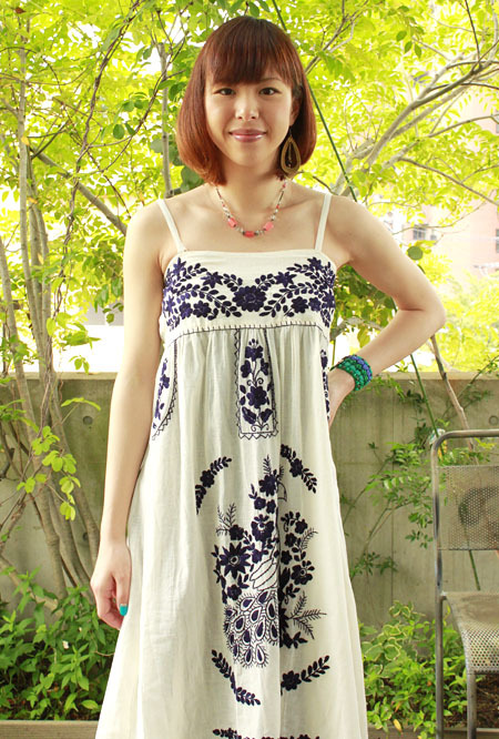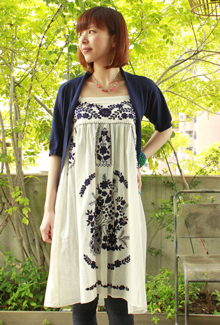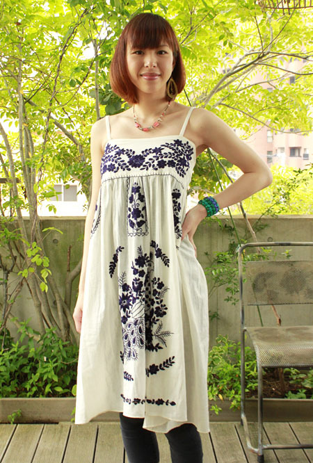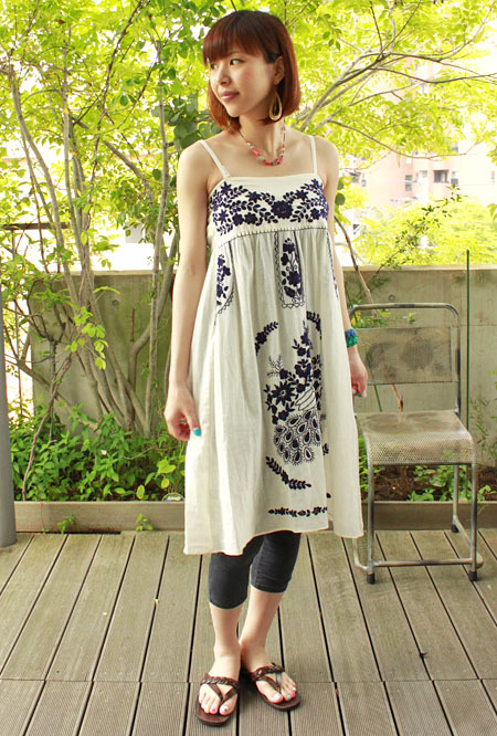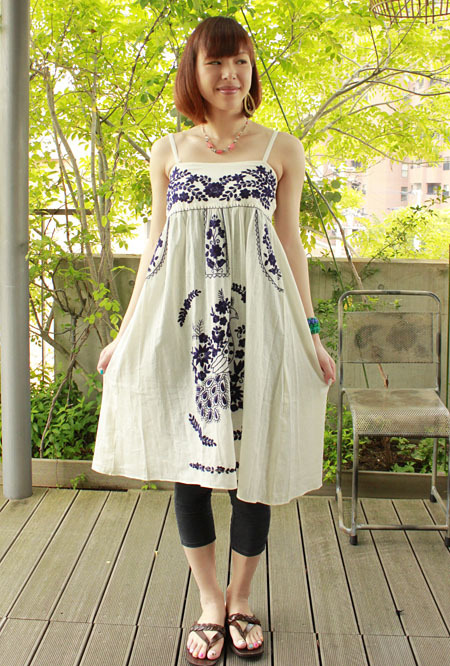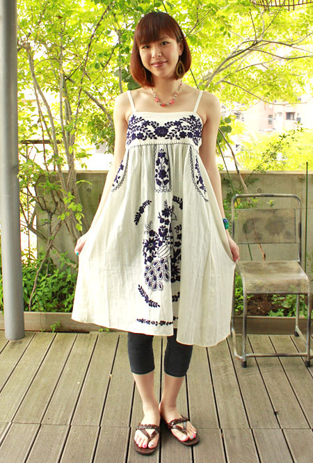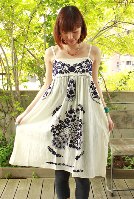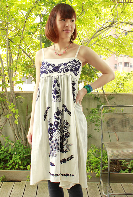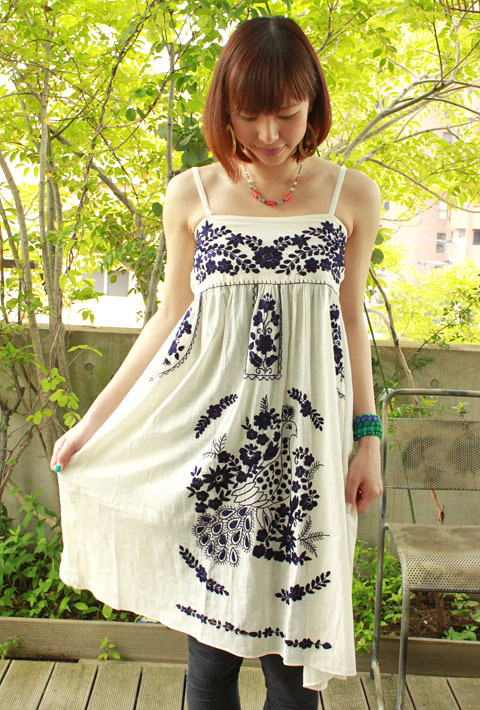 メキシカン刺繍のキャミソールチュニック [Ts.Peacock-Wh]
