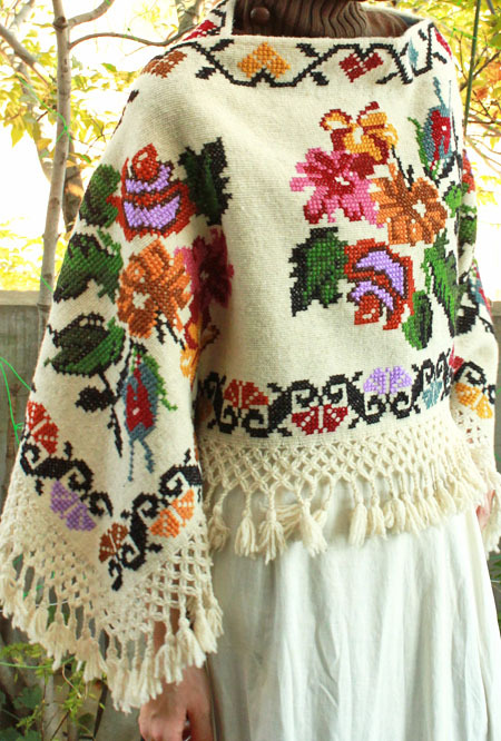 そこに手刺繍を入れて、ポンチョの形に縫製してあります。