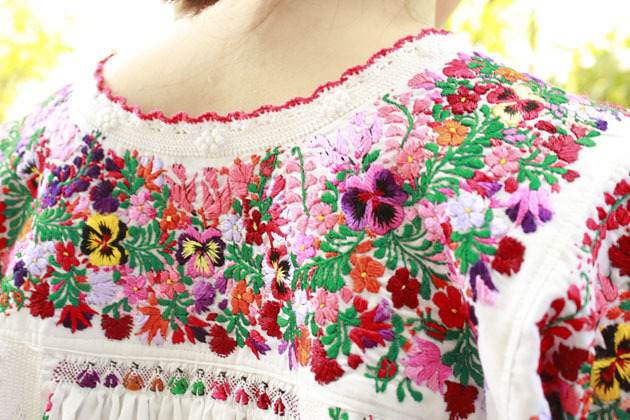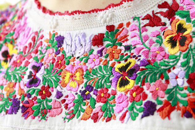 見ていて飽きない細かい刺繍。オアハカに咲く季節の花を思いを込めて刺繍にします。