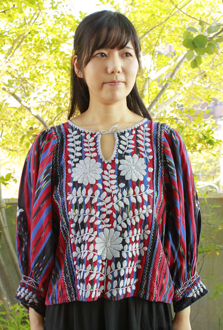 チアパス手織り生地のボリューム袖トップス
