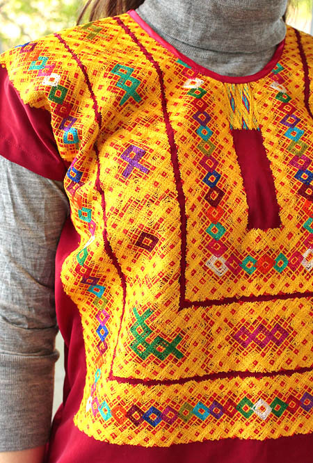 メキシコ刺繍の中でも群を抜いて華やかなテワナの刺繍ウィピル