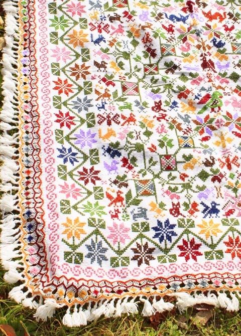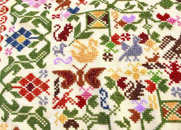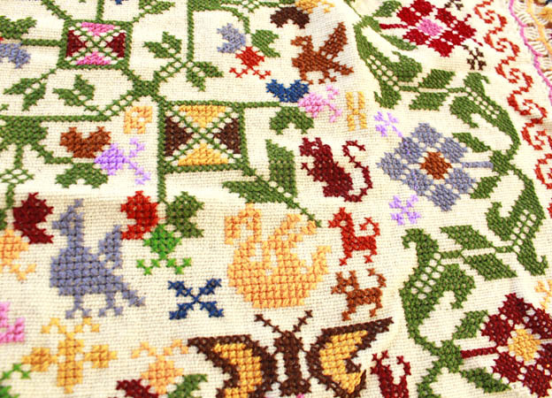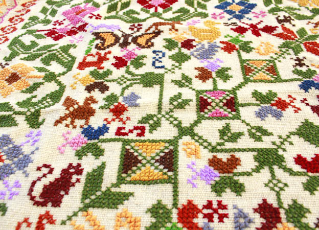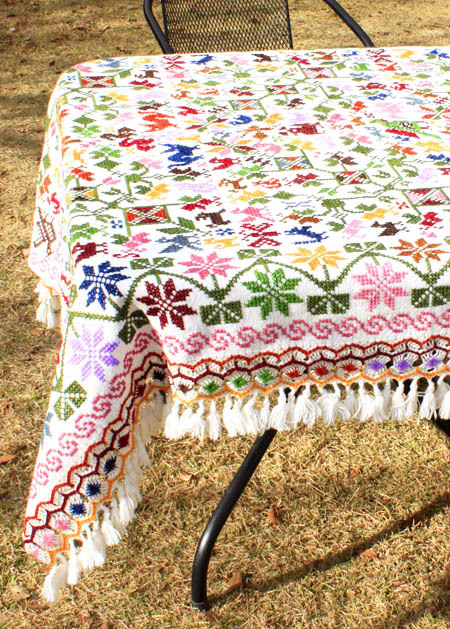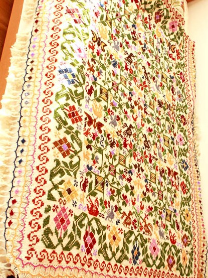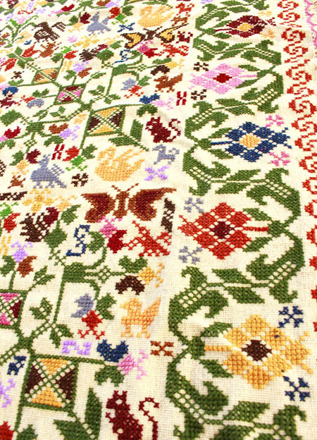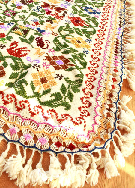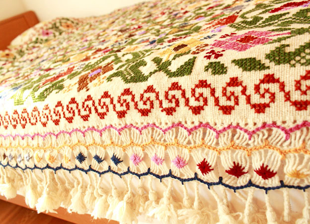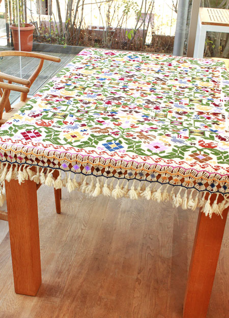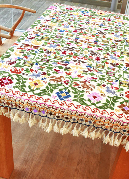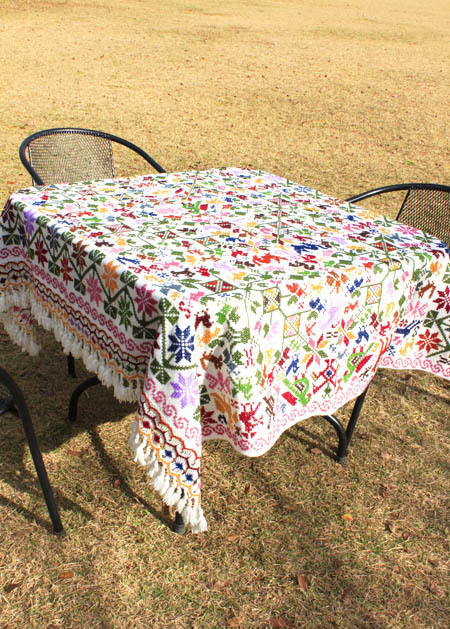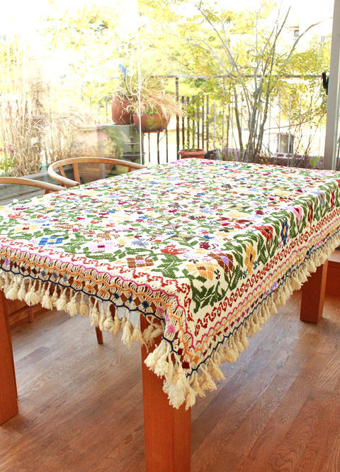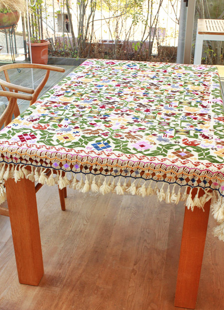 手刺繍のベットカバー(テーブルクロス・マルチカバー)