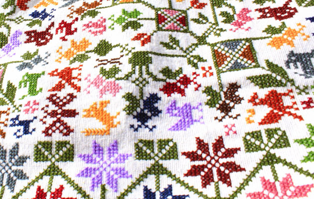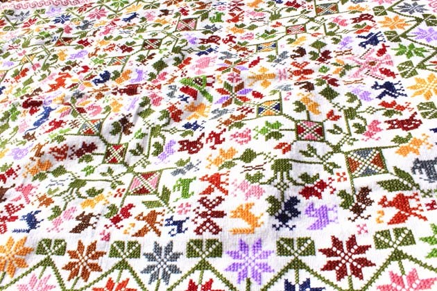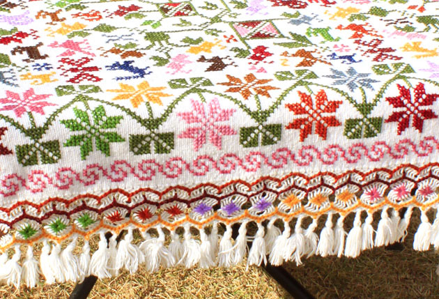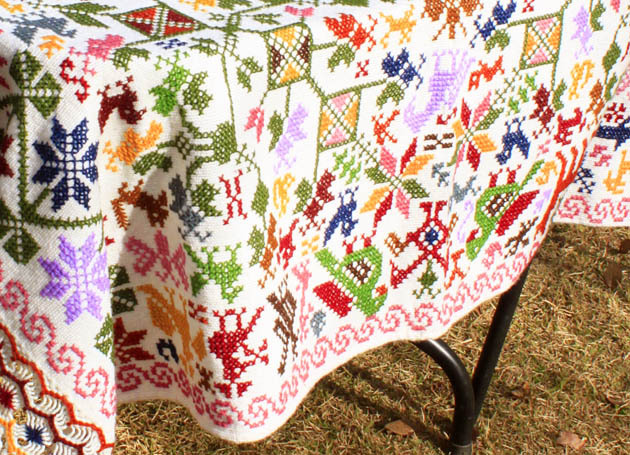 プエブラ州の羊毛手織りテキスタイル [最高傑作・総刺繍ベットカバー]