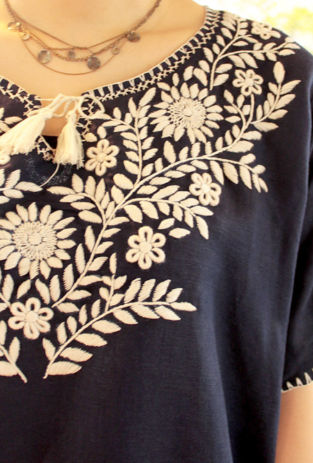 リネン生地のチアパス刺繍トップス [アグアカテナンゴオリジナルNavy]