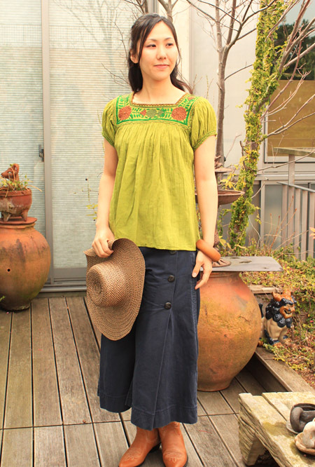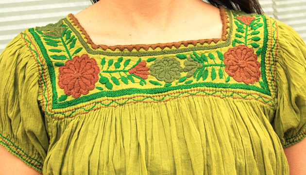 メキシコ刺繍ブラウス「チアパス」 [アグアカテナンゴ・モスグリーン]