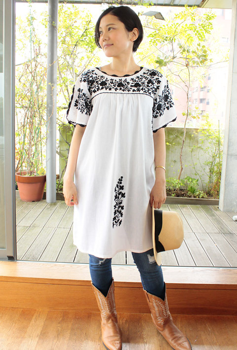 ガーゼ刺繍のチュニックワンピース [Ts.SAホワイト×ブラック]
