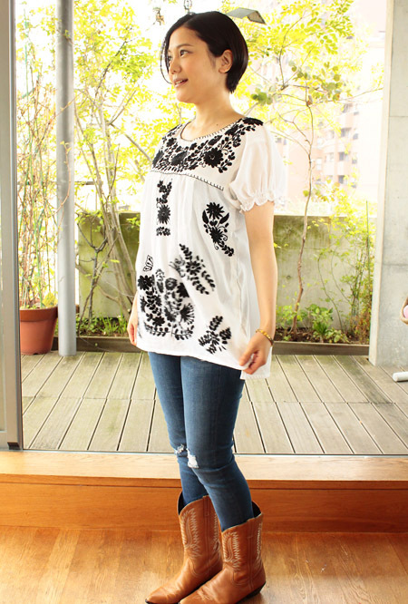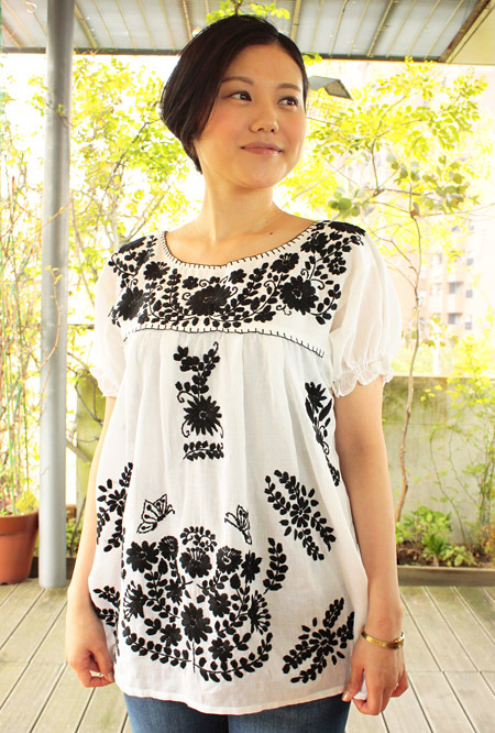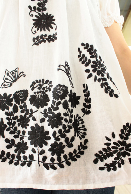 モノトーン刺繍のガーゼトップス [Ts.mcホワイト×ブラック]