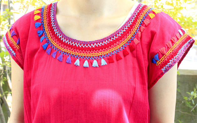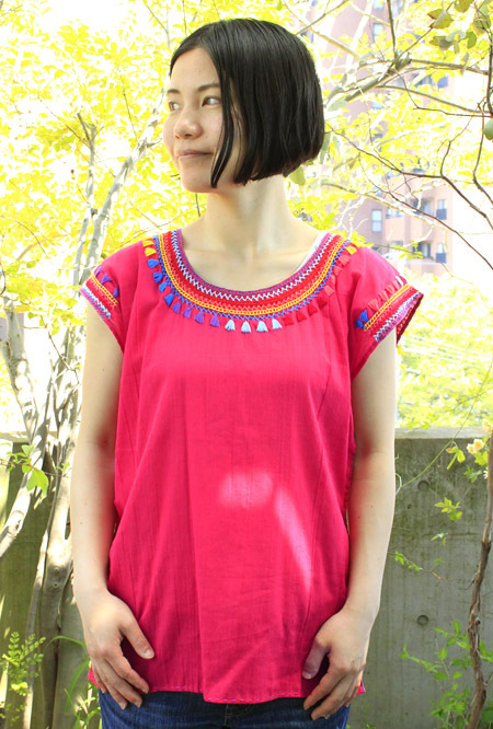 メキシコ刺繍のウイピルブラウス「チャムラ刺繍」