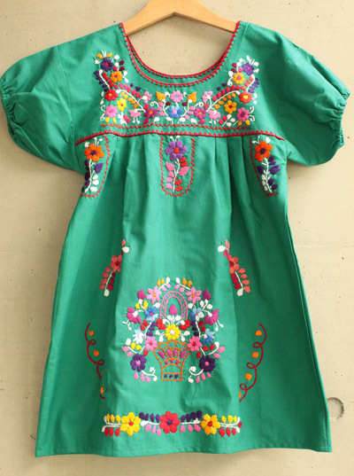 メキシコ刺繍のワンピース [120〜130グリーン]