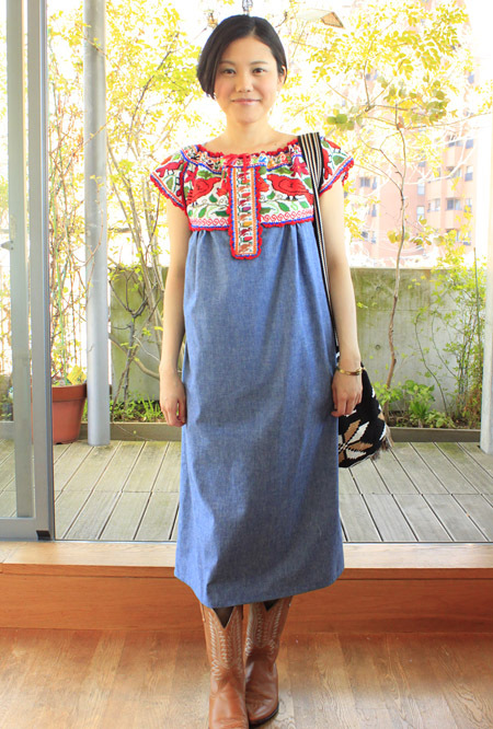 クロスステッチ刺繍のダンガリーワンピース [santiago yaitepec]