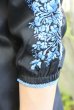 黒地に落ち着いたグレーブルー(少しくすんだミズイロです)の刺繍が袖にも入り、大人っぽい1着です。