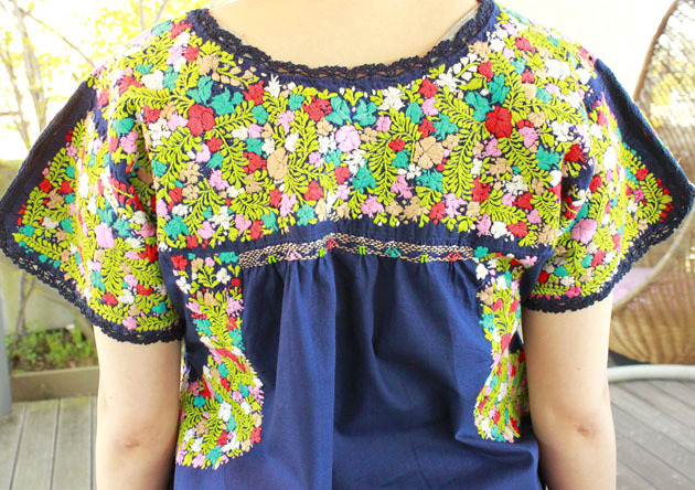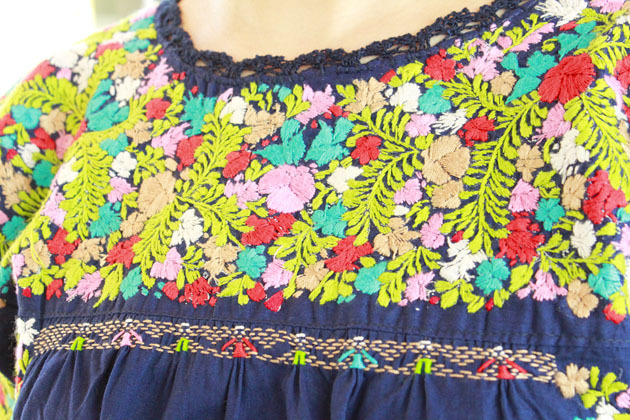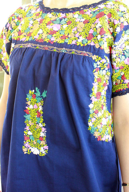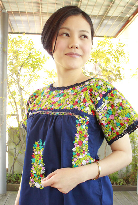 見ていて飽きない細かい刺繍。オアハカに咲く季節の花を思いを込めて刺繍にします。