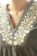袖口、Vネック周りにはグレーのレースを使用し、着やすい型紙で洋服になりました。