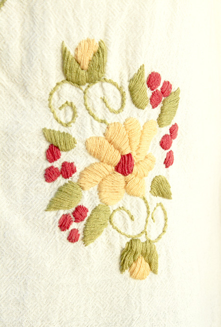 メキシコ製の風合いある綿生地マンタガーゼ生地に刺繍された1着です。