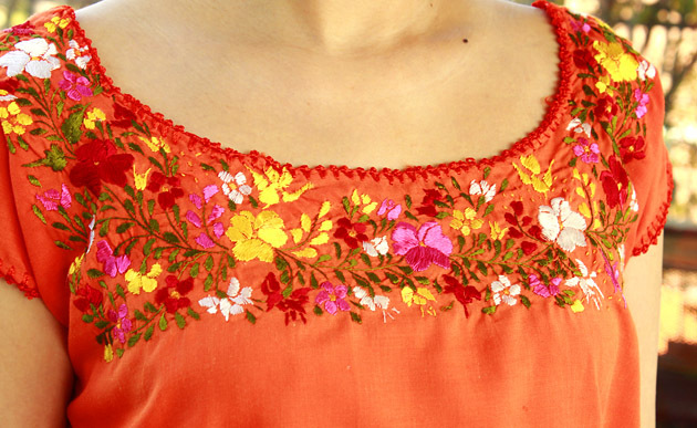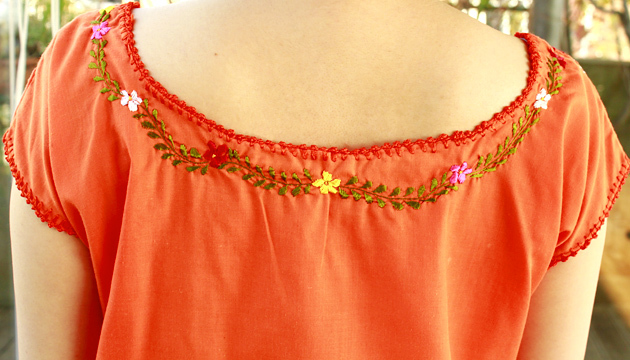 見ていて飽きない細かい刺繍。オアハカに咲く季節の花を思いを込めて刺繍にします。