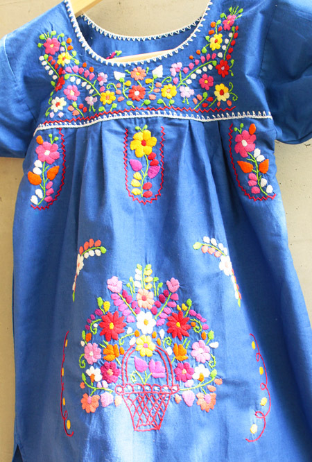 メキシコ刺繍のワンピース [120サイズネイビー]