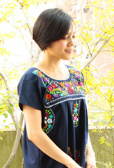 定番メキシコ刺繍チュニックワンピース [プエブラ州の刺繍amcl]