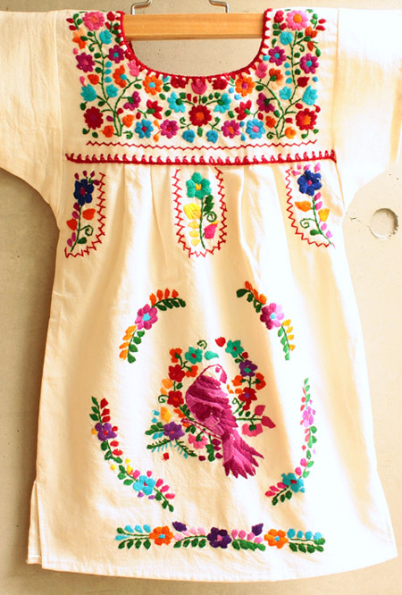 メキシコ刺繍のワンピース [100サイズオウムの刺繍]