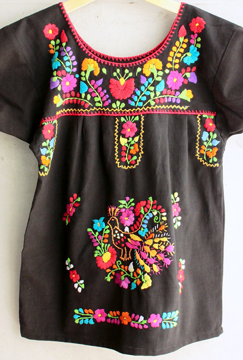 孔雀柄メキシコ刺繍のチュニック [100〜140サイズBK]