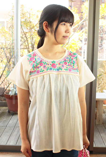 メキシコ刺繍のガーゼ生地トップス