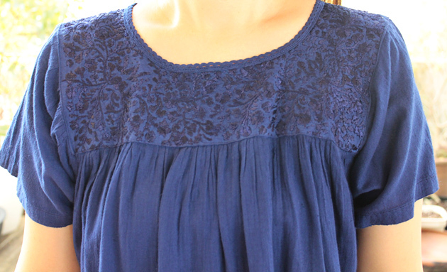 生地はふっくらとしたメキシコのガーゼ生地を使用し、刺繍は光沢のあるレーヨン糸で丁寧に刺繍が施されています。