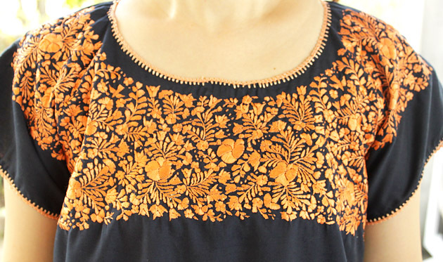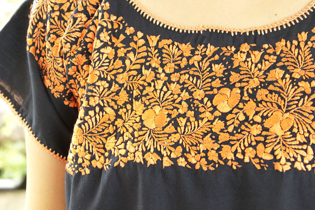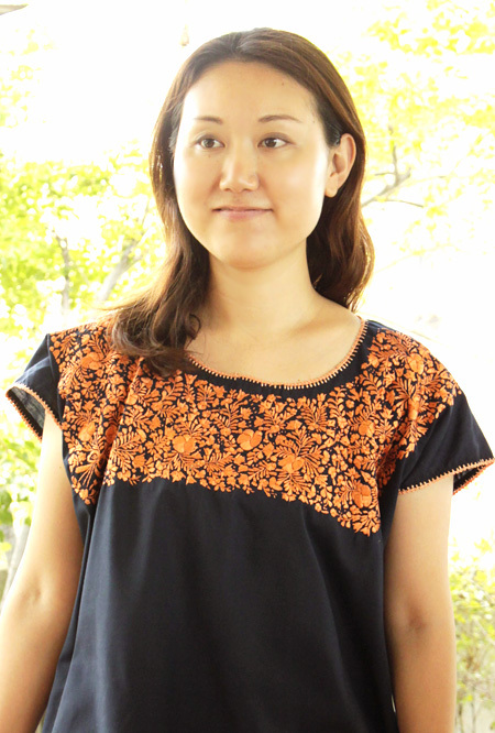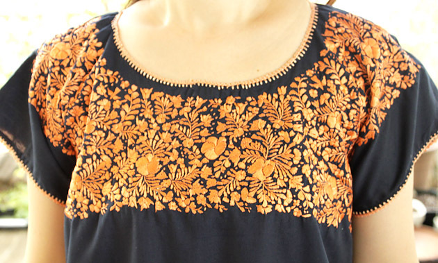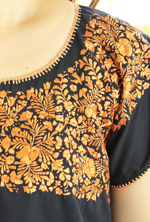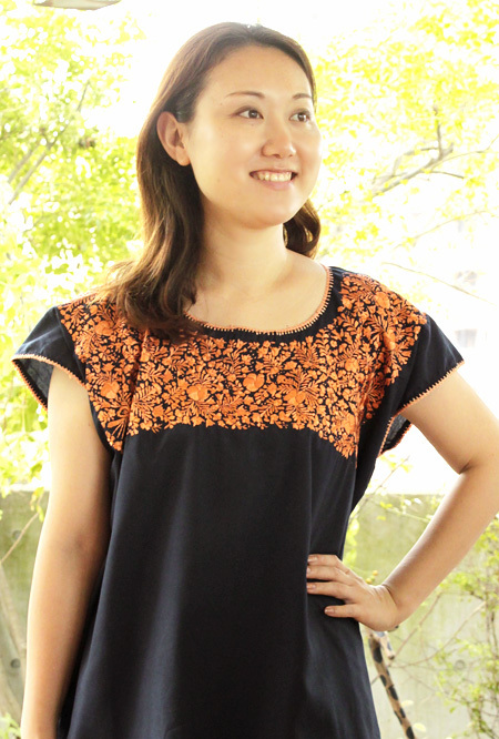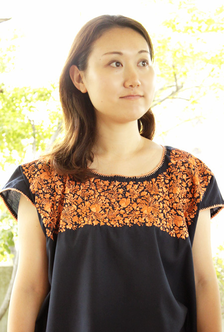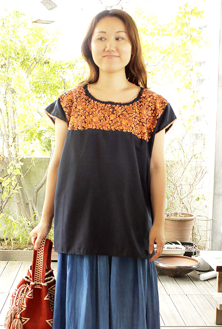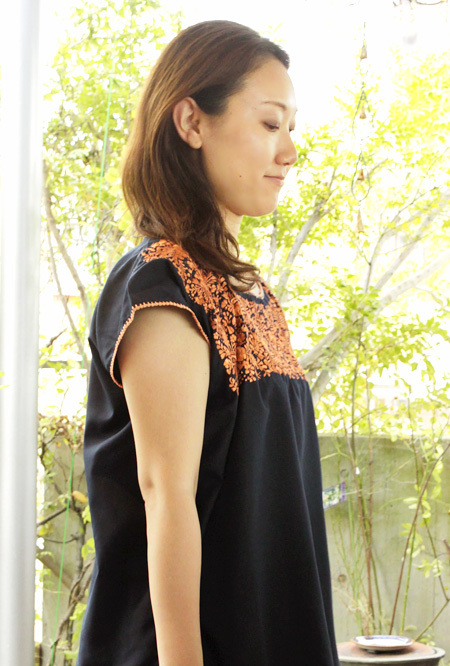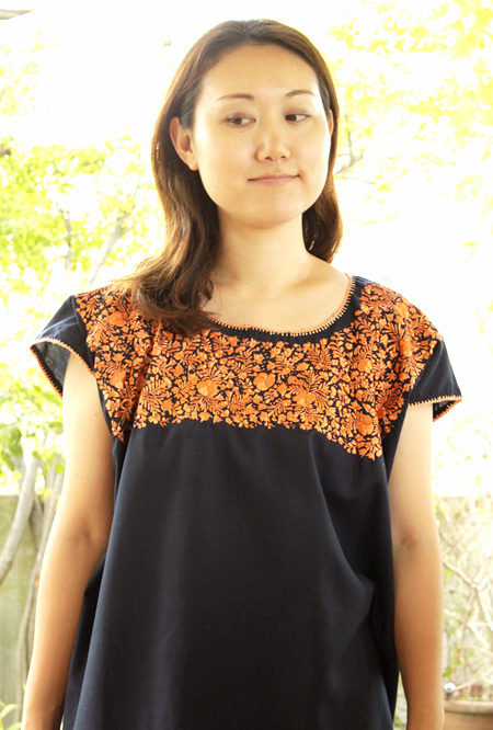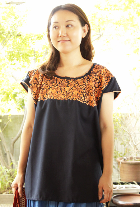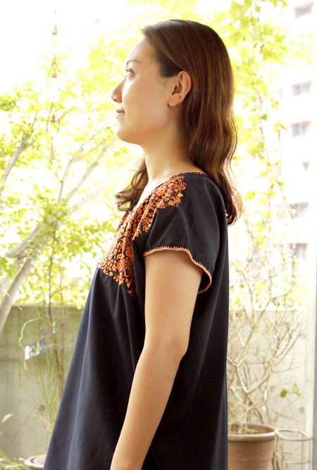 サンアントニーノ刺繍ウィピルトップス [マリアさんの作品ネイビー×淡オレンジ]